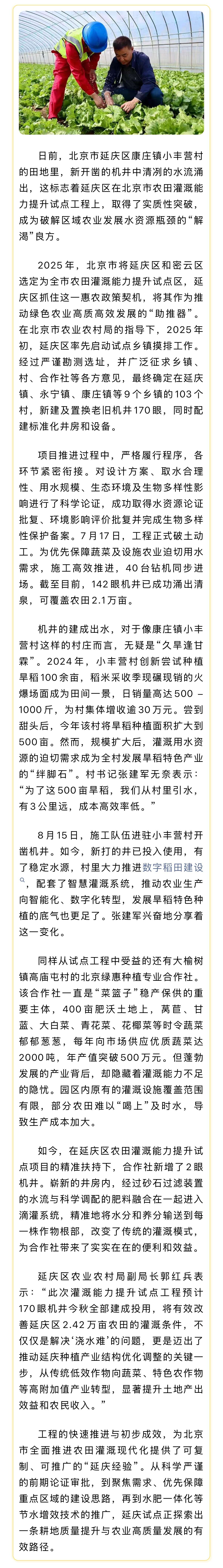 北京市农田灌溉能力提升试点工程显成效 延庆2.42万亩良田迎来“解渴”良方